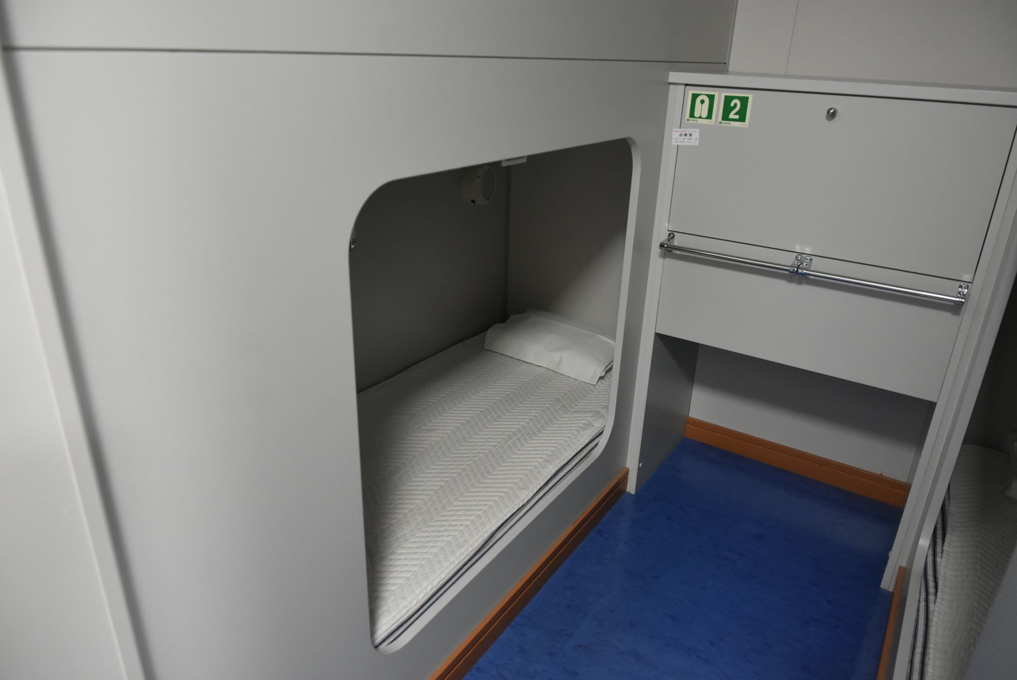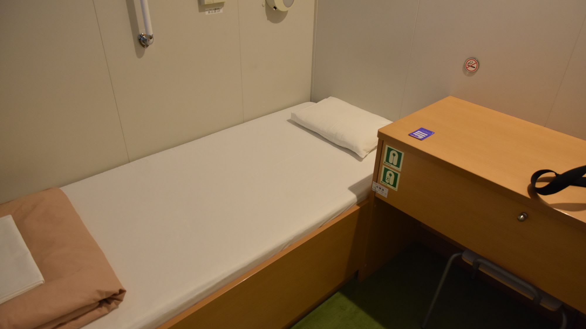 小樽港を夕方に出港して、翌朝の午前9時過ぎには新潟港で下船するので、この部屋で良いかと思ったのですが、予想通りというか、それ以上というか、簡素な上に、トイレも付いてないので高齢者向きではなかったですね。