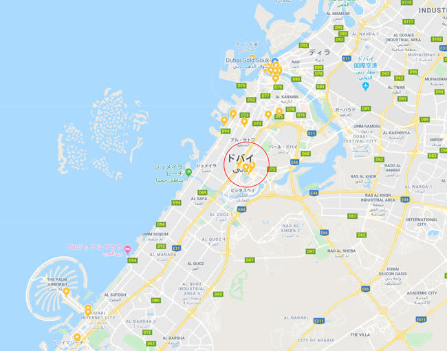 赤丸で囲んだ場所(ドバイモール周辺)以外の★印全てです。