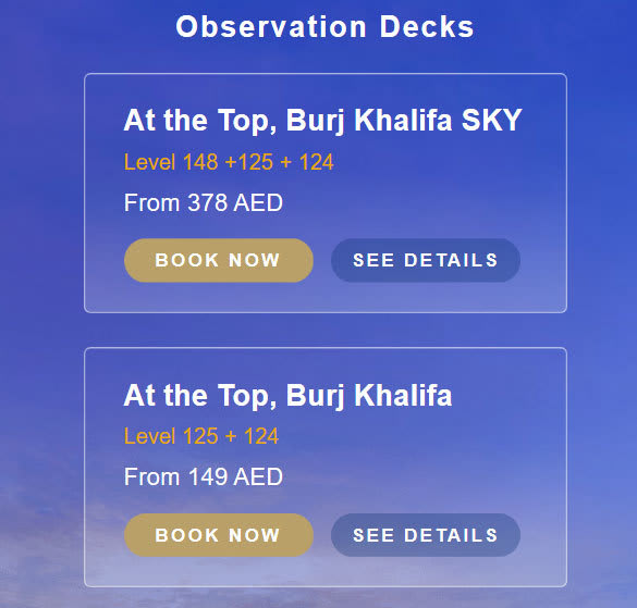 At the Topに行くだけでDh149(約5,000円)となっています。