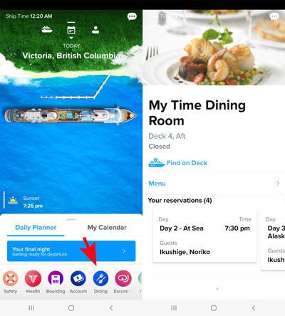 ちなみに夕食の時間ですが、私達はマイタイムダイニングを希望していたため