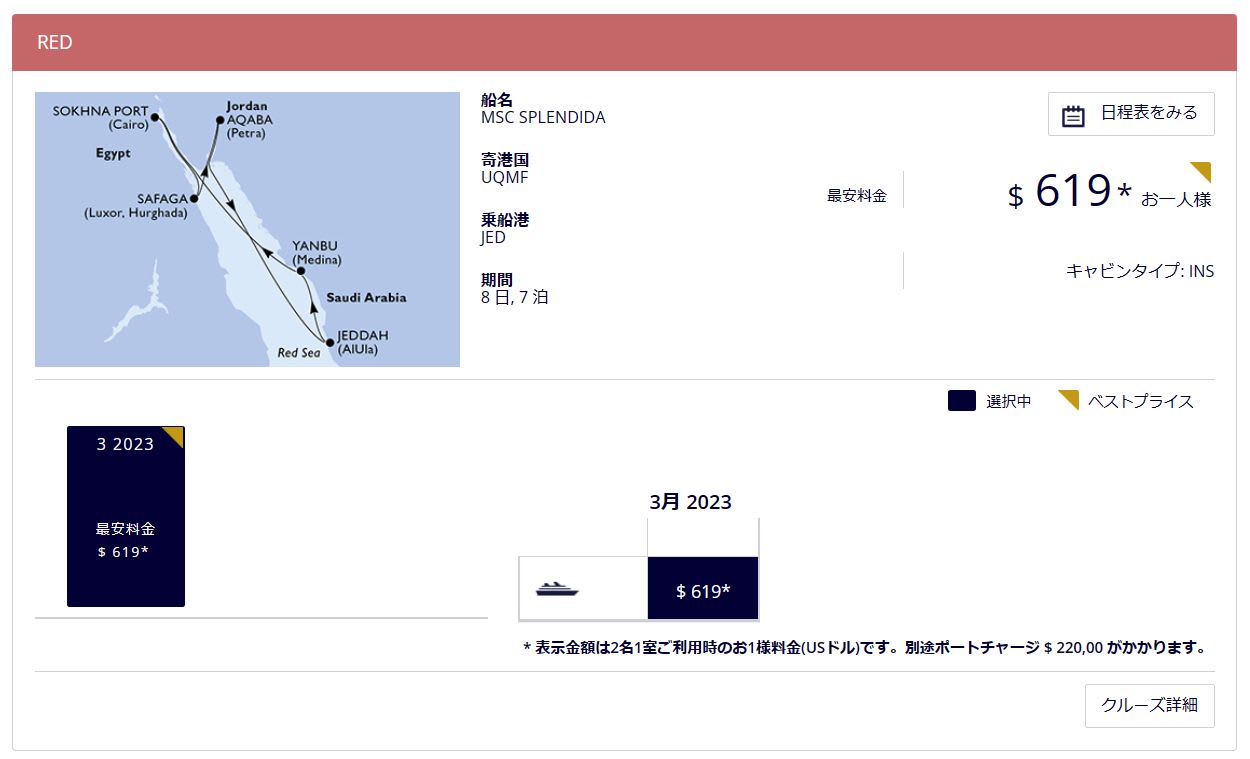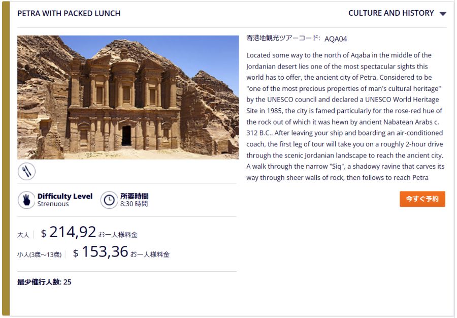 クルーズ申し込みと同時に寄港地アカバ(ヨルダン)でのエクスカーションも予約済。