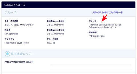 ステータスマッチにより、プレミアムバルコニーへとアップグレードされました。