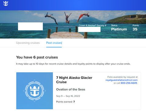 ロイヤルカリビアン/CROWN&ANCHORの会員レベルで申請書類を提出。
