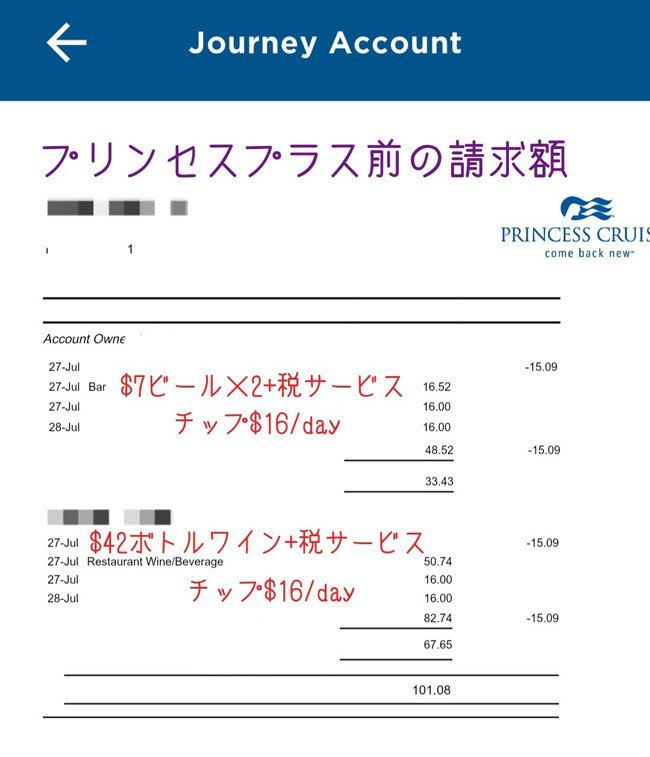 乗船後のランチで飲んだビール(2杯分)とディナーでオーダーしたボトルワイン1本に
