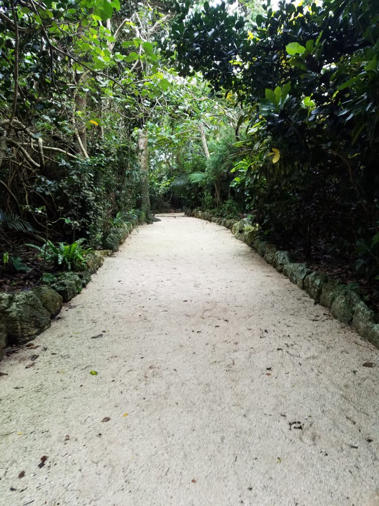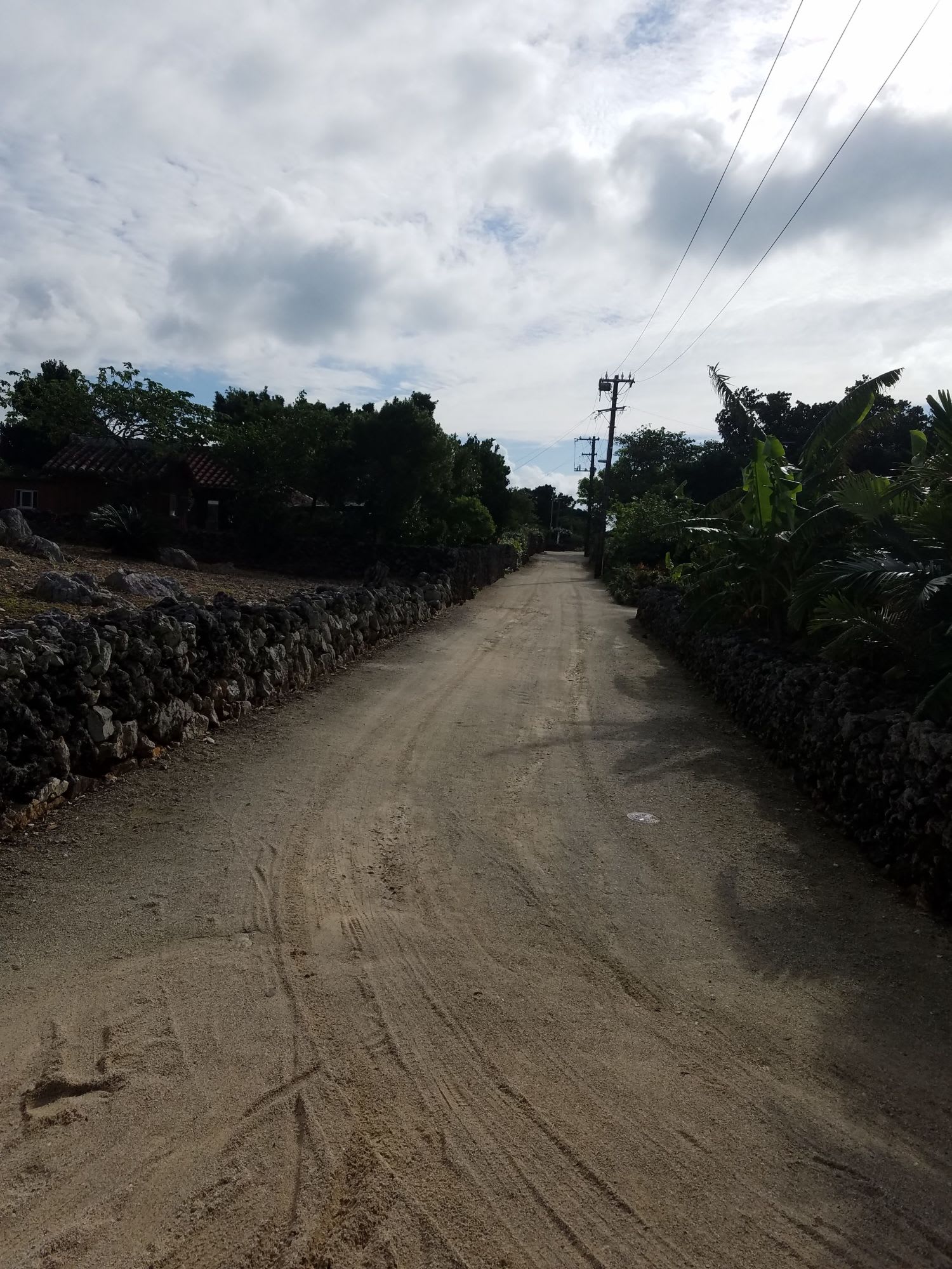 ゆっくりゆっくり、ここは石垣らしい砂の地面の道を石垣の間を進んでゆきます。
