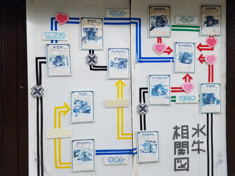 幾頭かの牛が 勤めていて、兄弟だったり、仲良しだったり、いとこだったり、系図もあります。