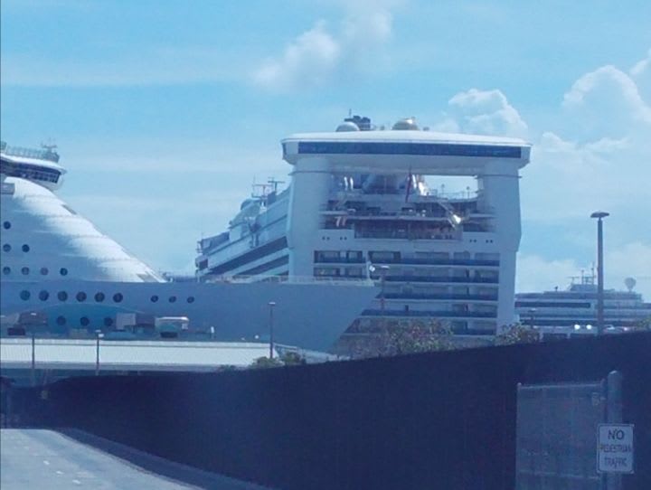 「ターミナル・ビル」奥にセレブリティとホーランドアメリカも見えます