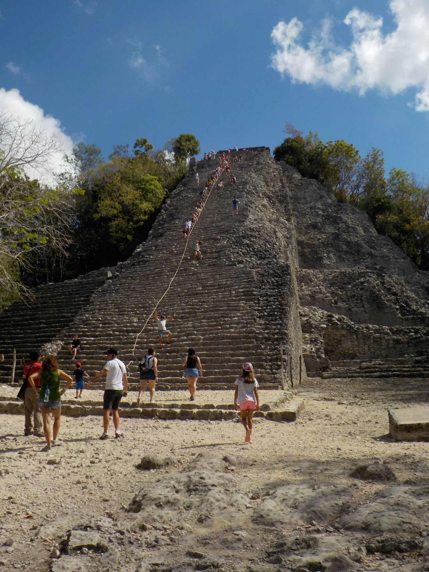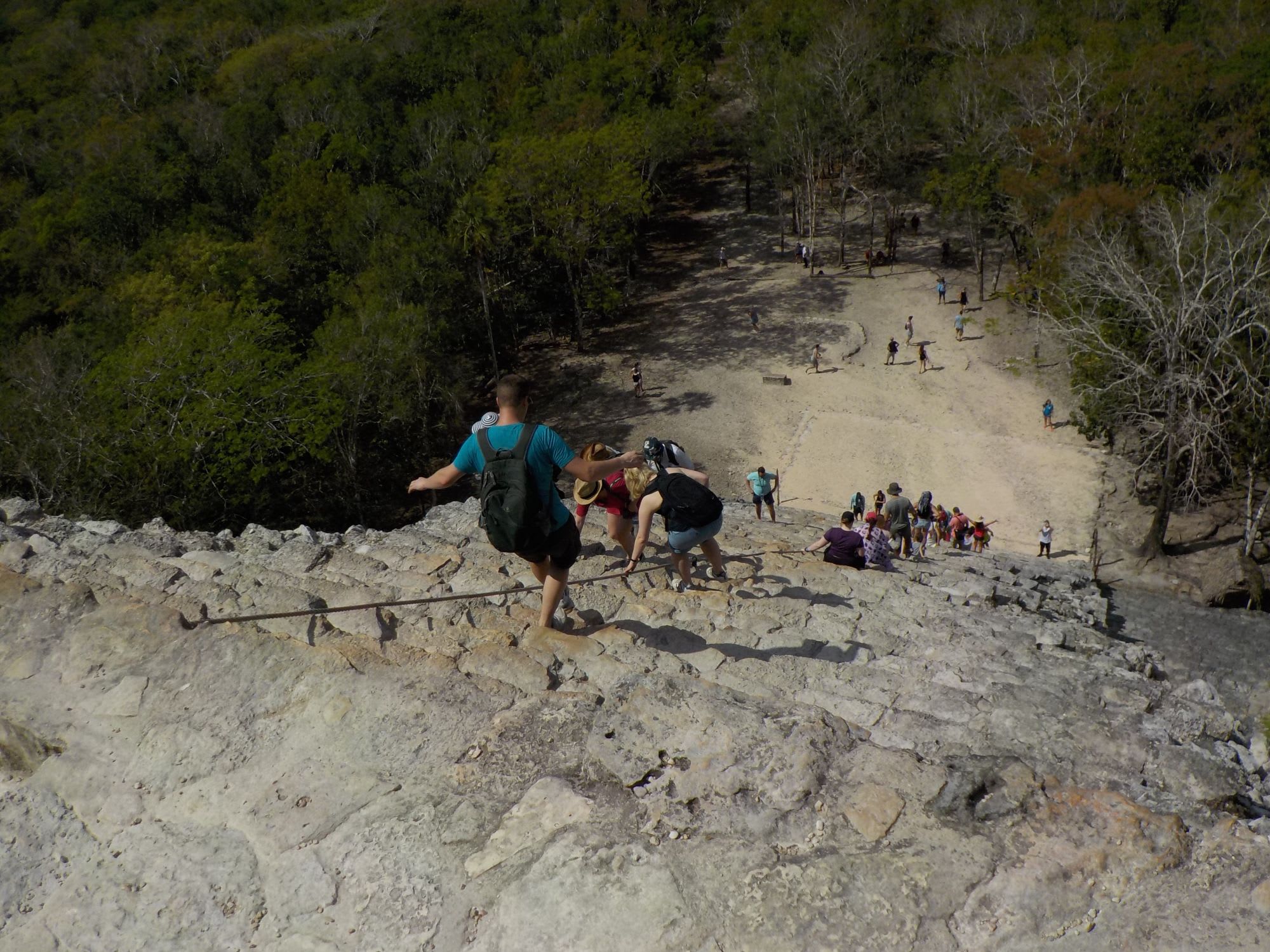 以前マヤの遺跡は訪ねたことがあり、ピラミッドにも登りましたが、ここはとんでもない急こう配です。