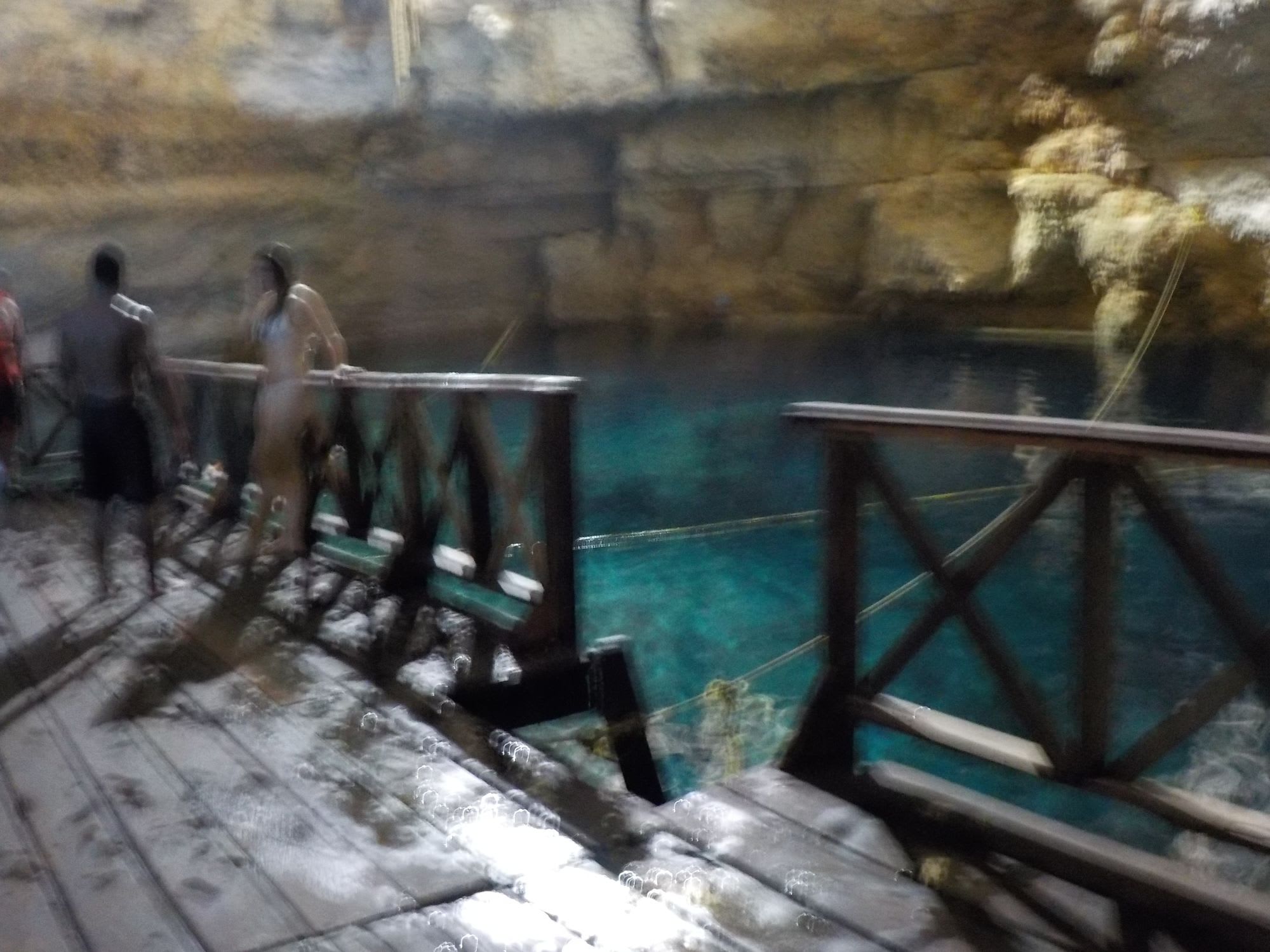 良く写真で見かけるようなセノーテではなく地下にあって木製のらせん階段を10mほどの深さまで降りていくと真っ暗な洞窟の中に泉があって、明かりと桟橋が取り付けられているので、そこから泳ぎに入ることができます。