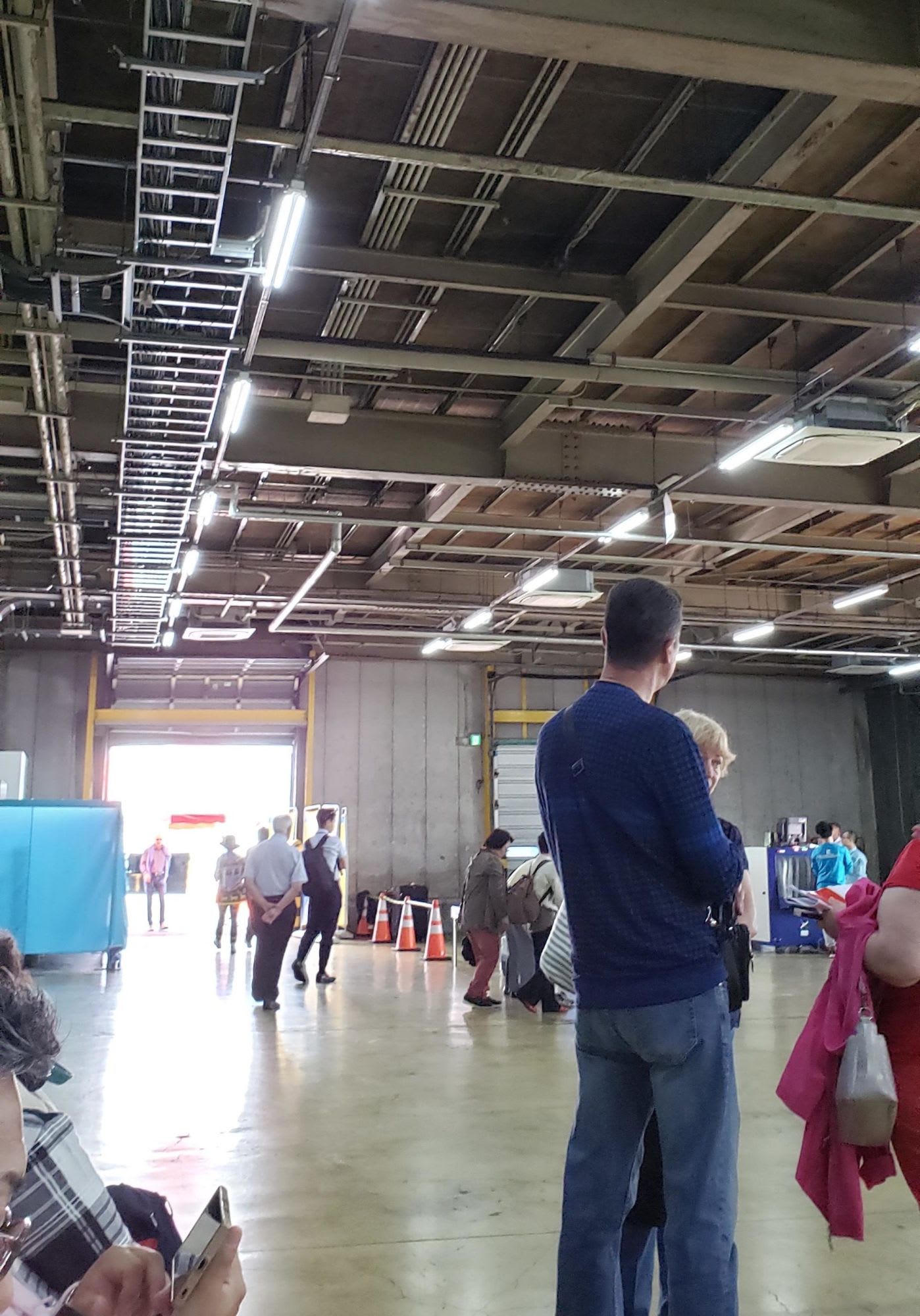 倉庫内で待ちます。折り畳み椅子はありました。