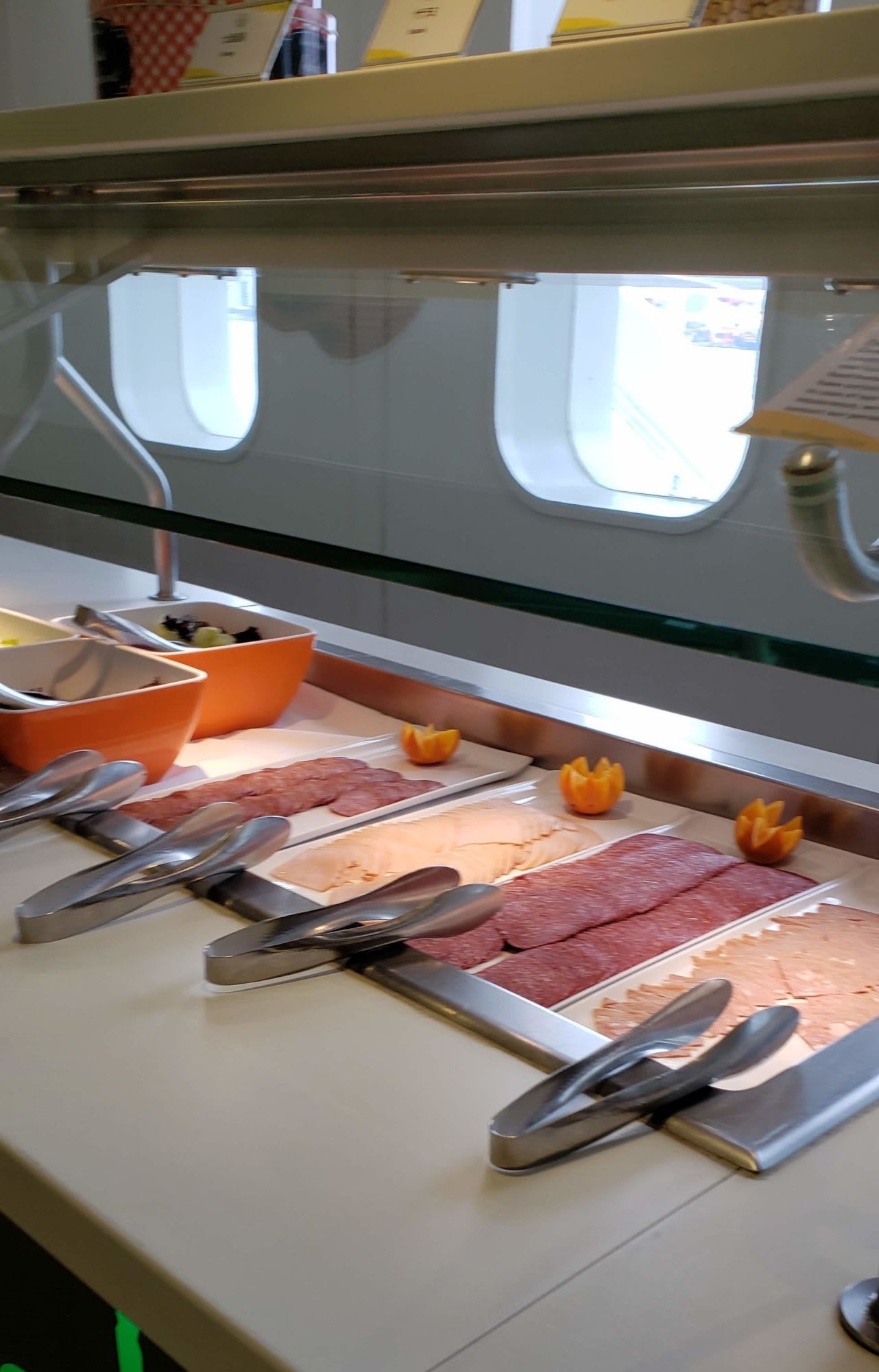 ですが、航海日は全員船内ですから、バフェが11:30から13:30まで、またはメインレストランの12:00から13:30のどちらかで食べないと、ディナーまでしっかりしたものは食べることができなくなります。