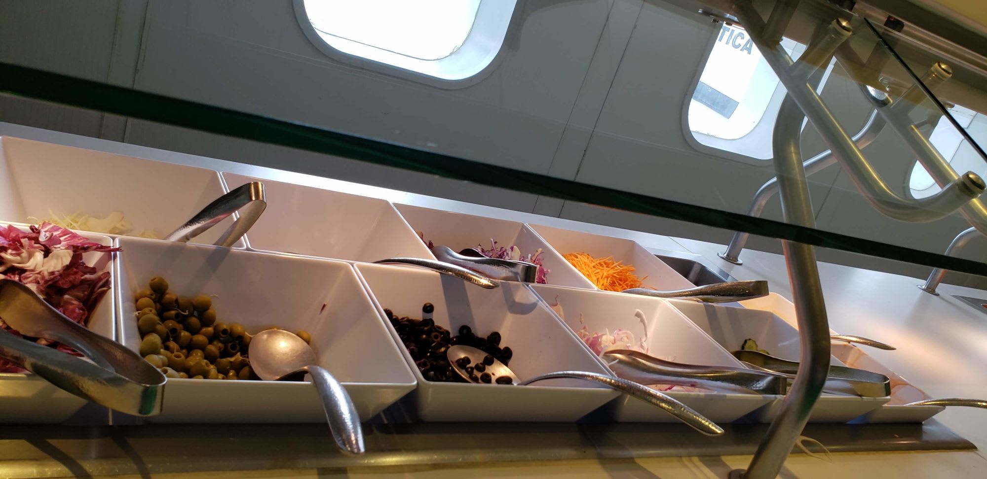 プリンセス等ではもう少し後までサンドイッチやハンバーガーなどの重めのものが食べられるのですが、やはりそこはカジュアルシップ。