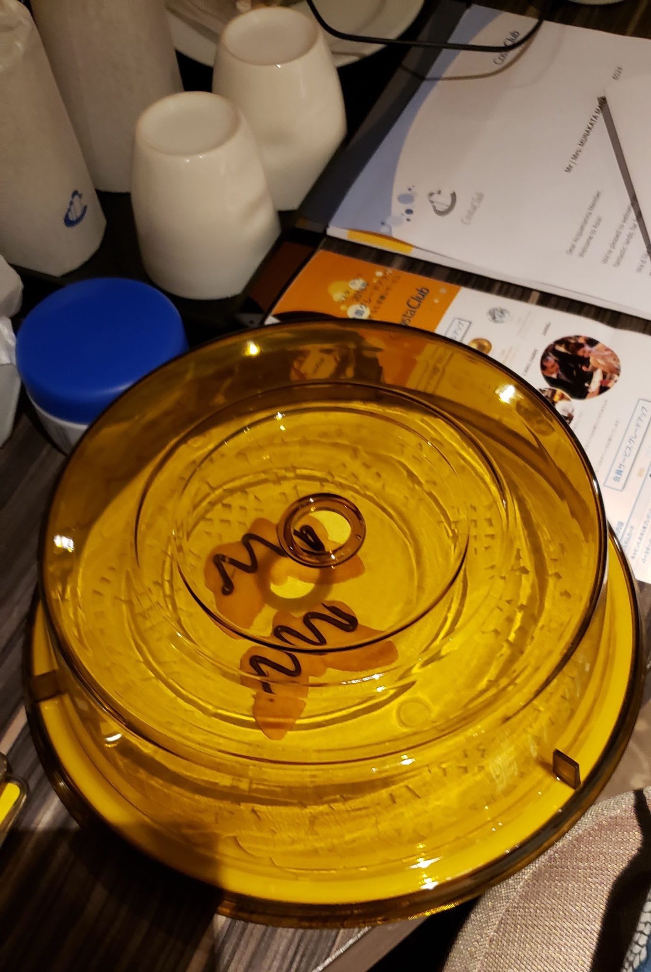ジュースなどは食べ物の横にグラスに入って並んでいます。写真を撮っていなかったのですが、幾種類かの卵料理やハム、ベーコン、コーンフレークなどや、デニッシュやドーナツ、パンケーキ。ヨーグルトも無糖とフルーツ入りと加糖、果物も何種類か、それと朝から甘そうなケーキやゼリー、おかゆや納豆ふりかけなどもありました。