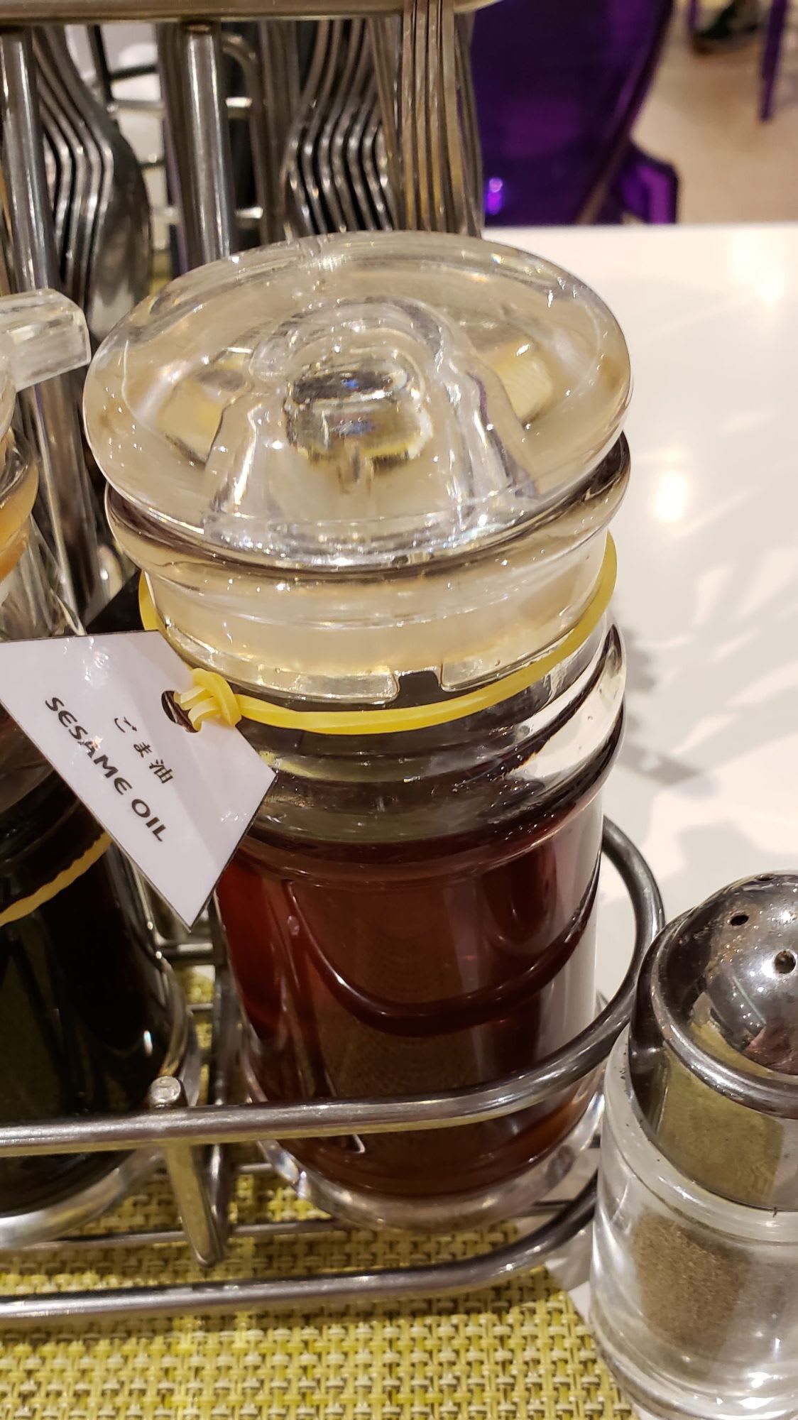バフェのテーブルにはカトラリーと醤油、ゴマ油が備えてあります。このゴマ油もなかなかおいしいのです。