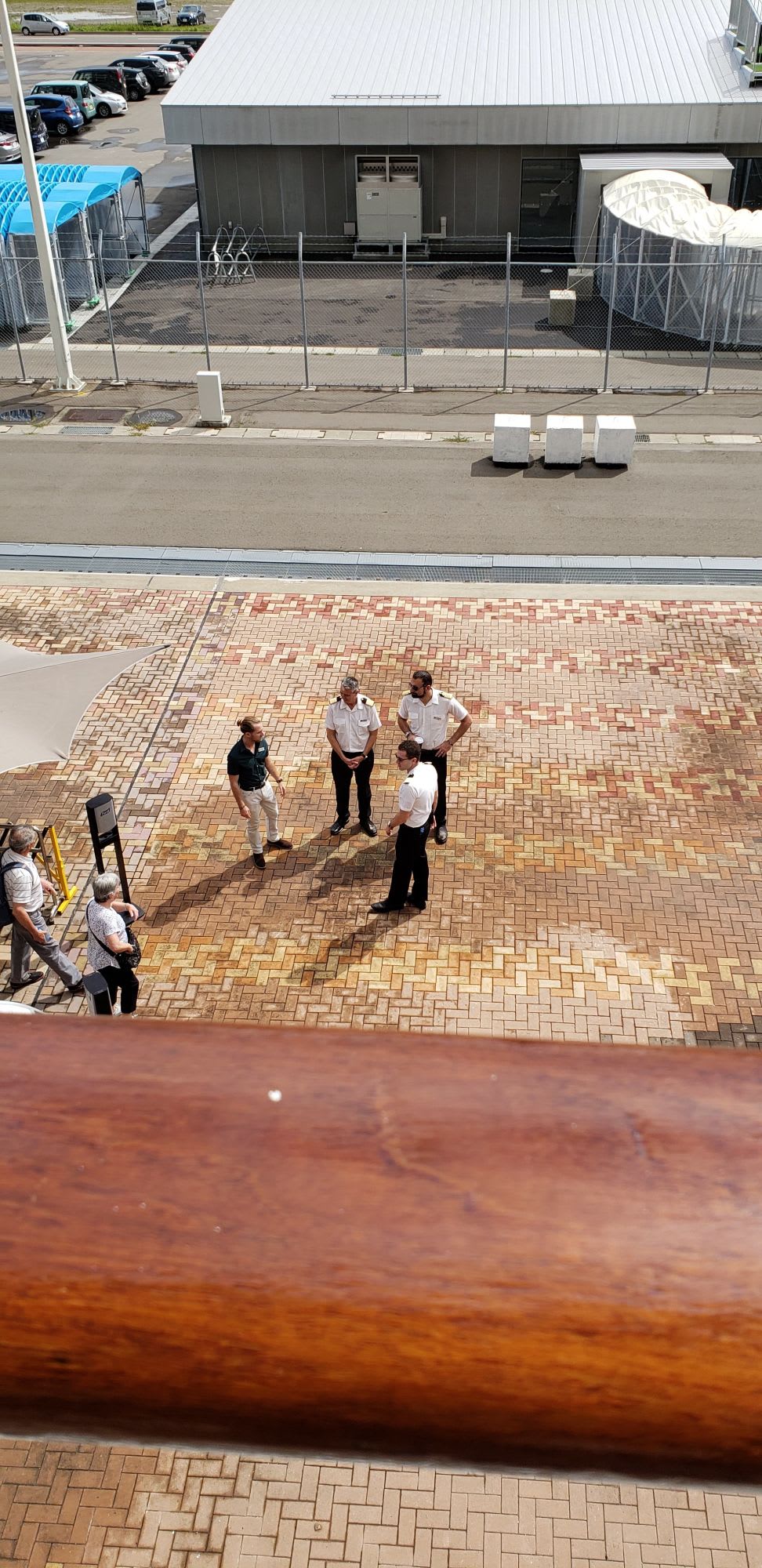 寄港地で 下船時に上級オフィサーが見送ってくれます