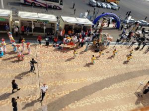 下のデッキで 見学していると 早めに下船された方が 一緒に踊っていらっしたり