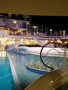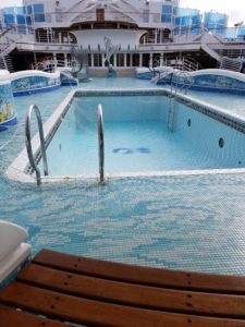 おおよそ、どこの船もそうであるように、塩水のプールになっています。ですから泳ごうと思ったら、水泳帽とかゴーグルがあった方がいいかもしれません。