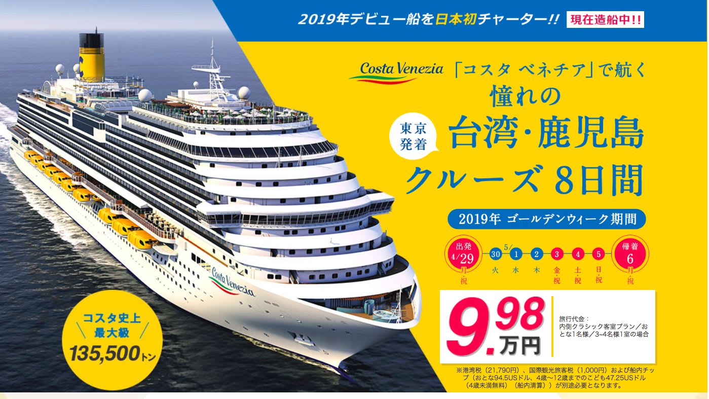 そこに、東京発着で、JTBがコスタの新造船ベネチアを投入してきました。ほぼ処女航海で、フィンカンティエリの造船所を出て、中国配船になる前のリポジショニングを引っ張ってきたみたい。