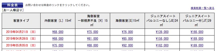 さて、クルーズ料金ですが、IACEで出ている金額は、GWでも割安。この料金は、アルコール・ノンアルコールの飲み物も含んだ金額です。