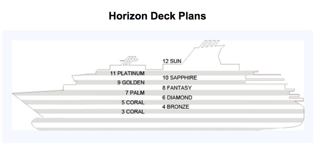 さて、今回選んだHorizonもアールデコのシルエットが美しい船ですが、その分バルコニーが少ないのは仕方ありません。9〜11階の3フロアだけにバルコニーの部屋があります。