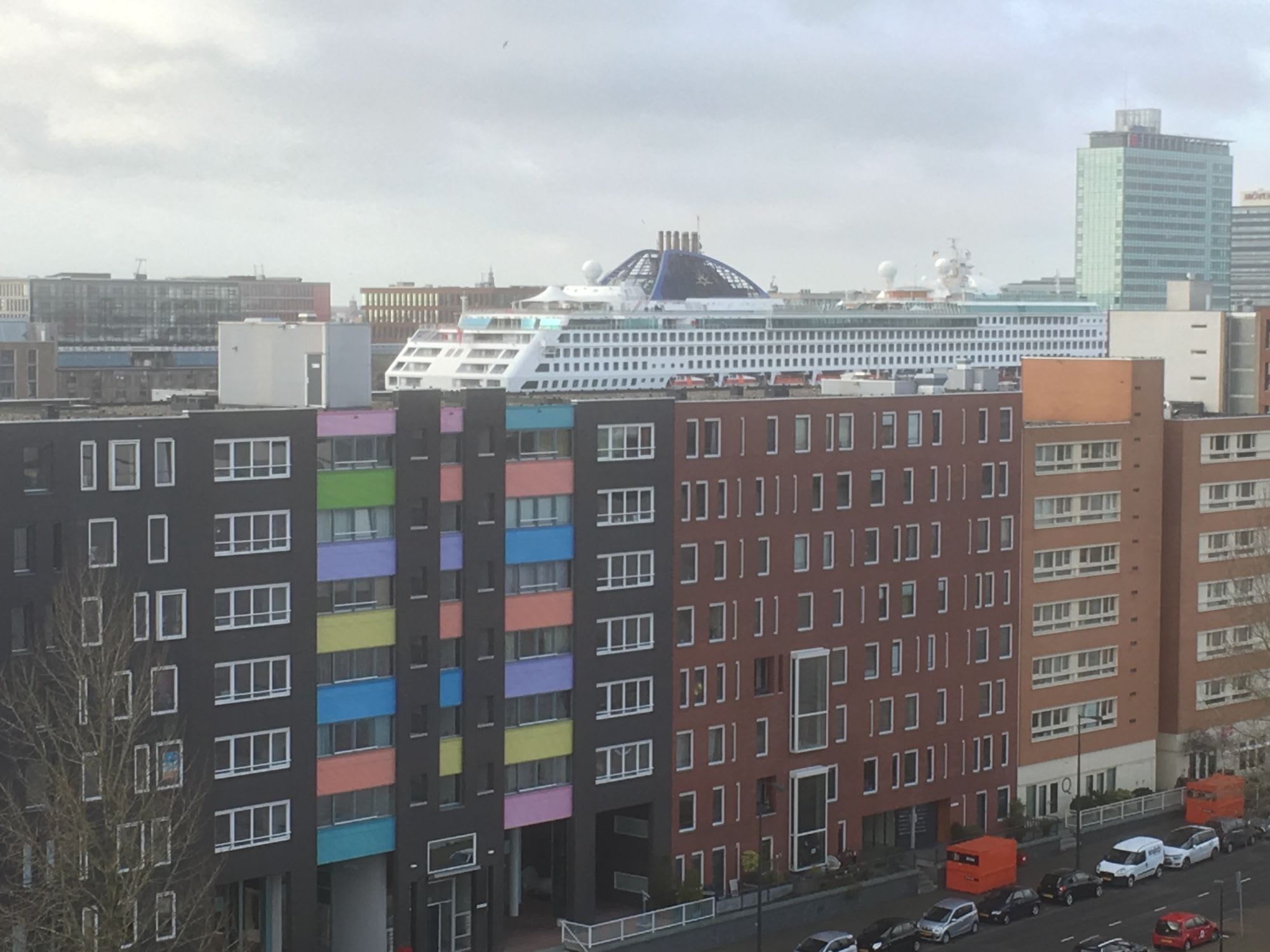 2回目の出会いは2017年大晦日から2018年元日。オランダはアムステルダムの年越し。ユニオンジャック塗装に衣替えしたOceanaは船齢20年近くに成っていたが、相変わらず美しかった。