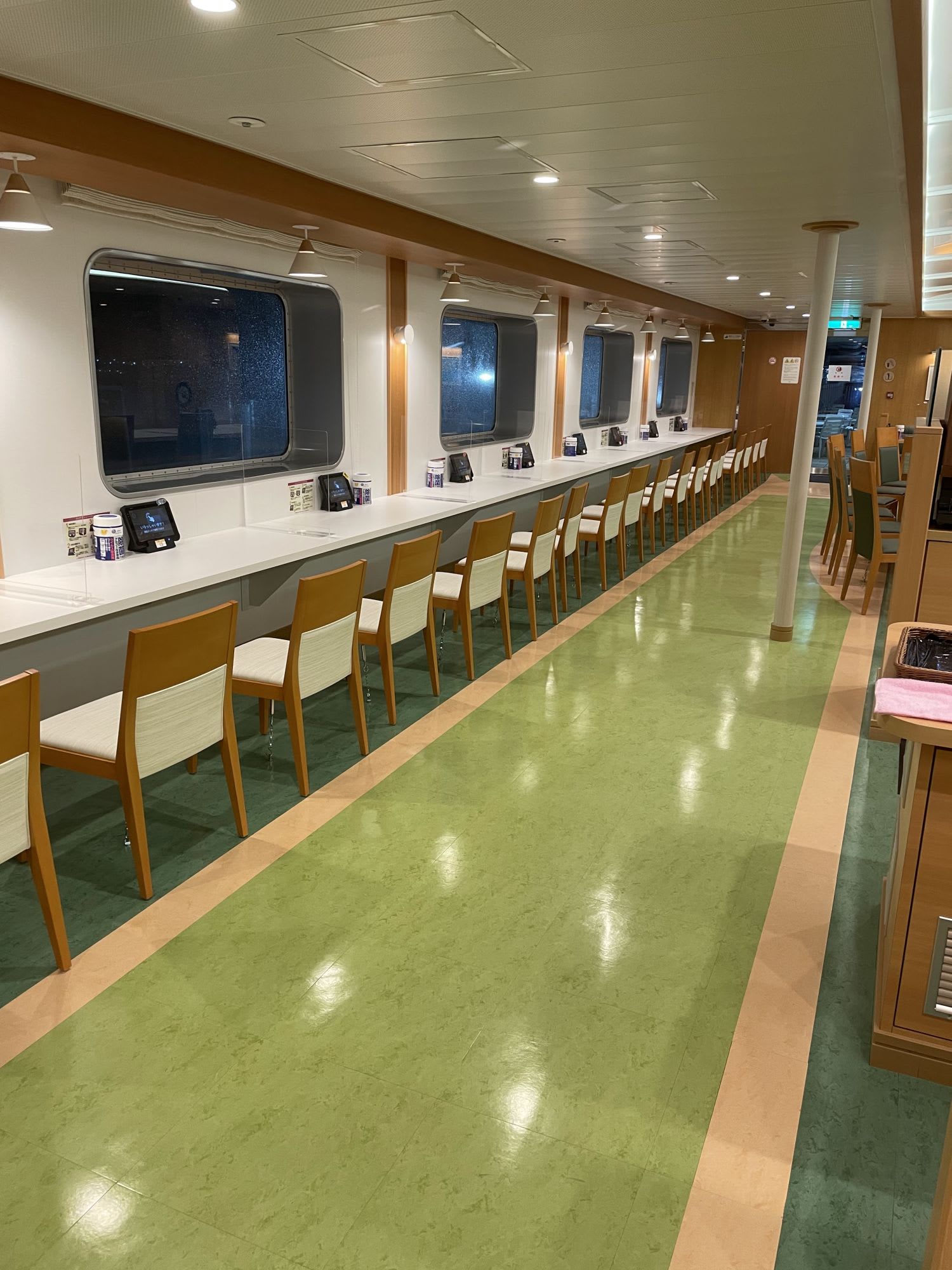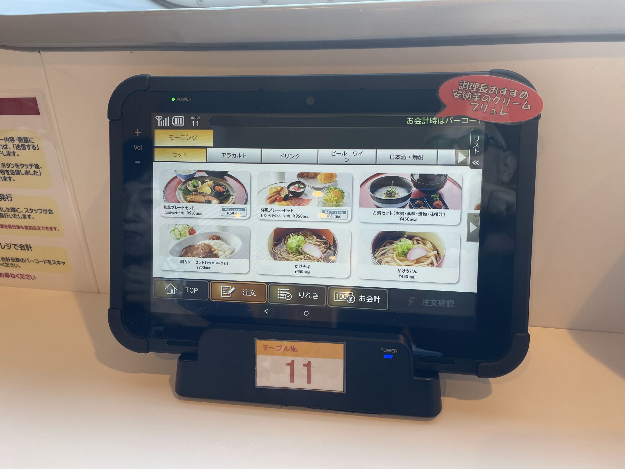 船内は、レストランですが、3食ともビッフェデはなくメニューから選ぶ方式。タッチパネルのメニューが便利でした。