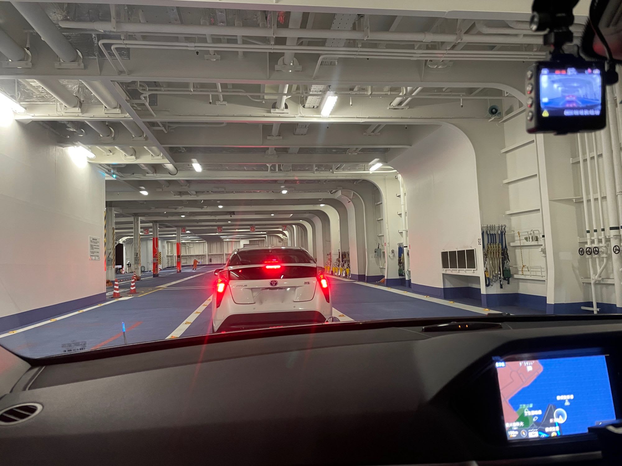 新門司港には予定通りの夜9時過ぎに到着。同乗者も合わせで車に乗って下船できます。