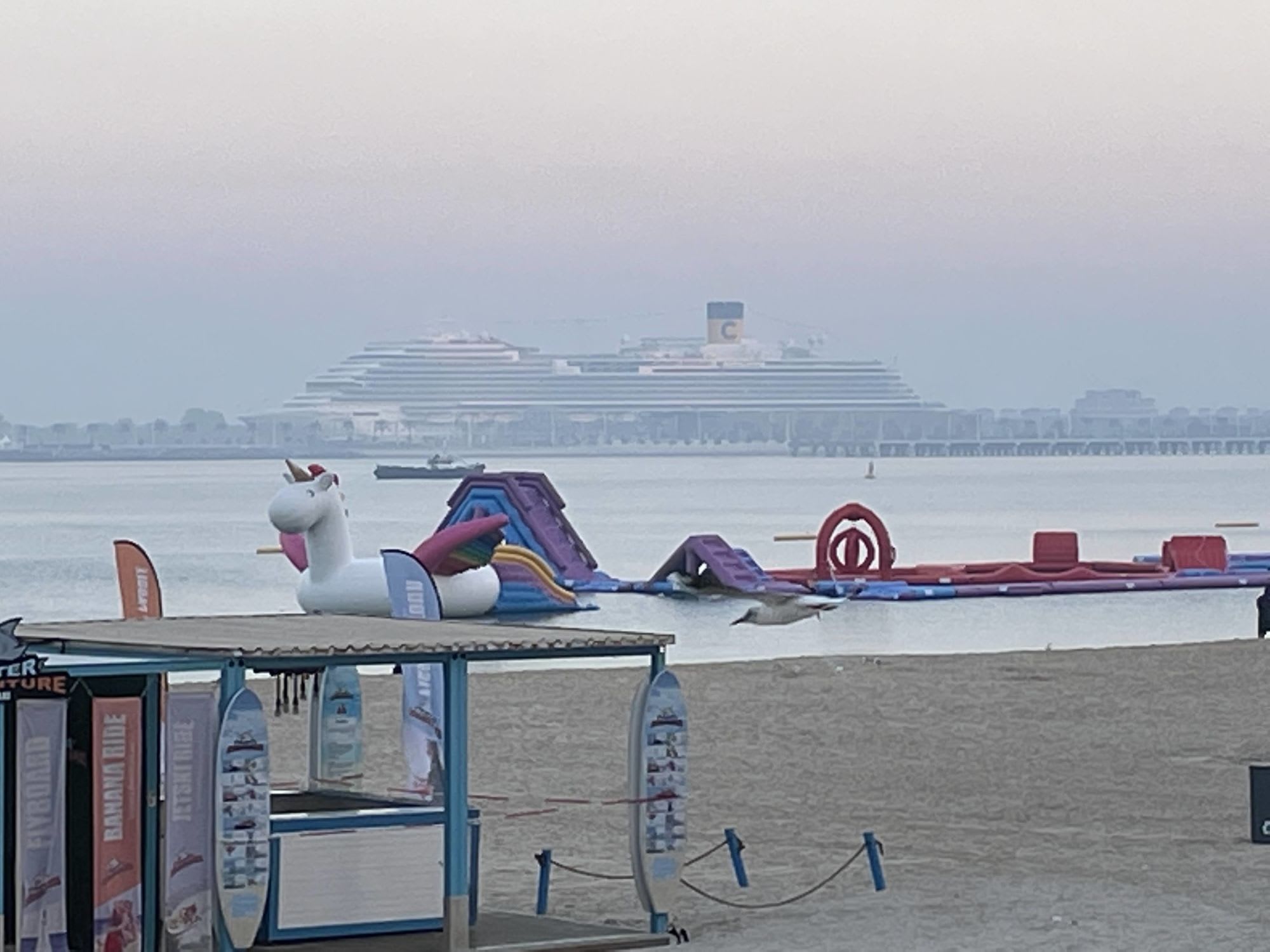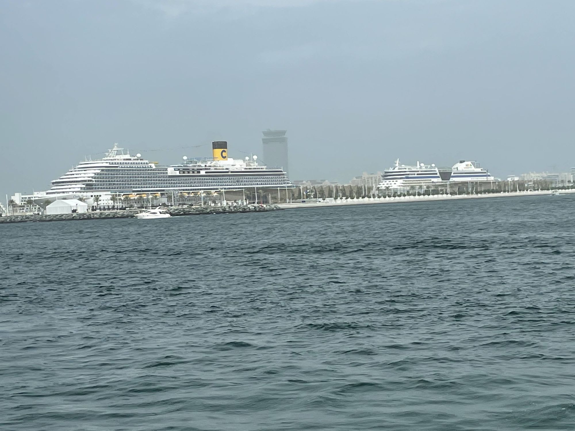 ビーチ側からドバイハーバーを見ると、Carnival2隻は出航し、Cost1隻になっています。
