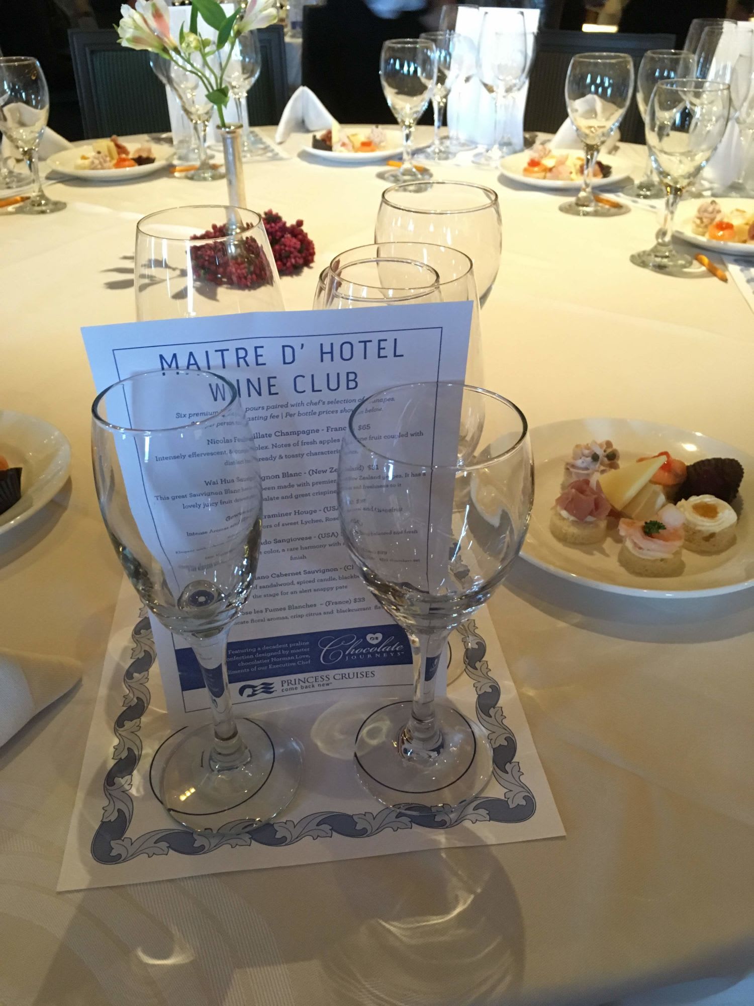 - 1時45分 ワインの試飲会。説明を聞きながら6種類のワインを飲み、カナッペを食べていたら、既に2時55分。