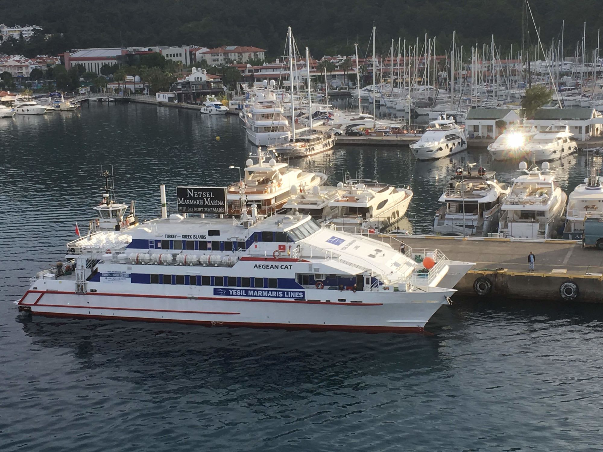 同じ場所から、ロードス島行きのフェリーが出ます。ギリシャへの出国になるので、税関、出入国審査が出来るこの突堤からになるようです。