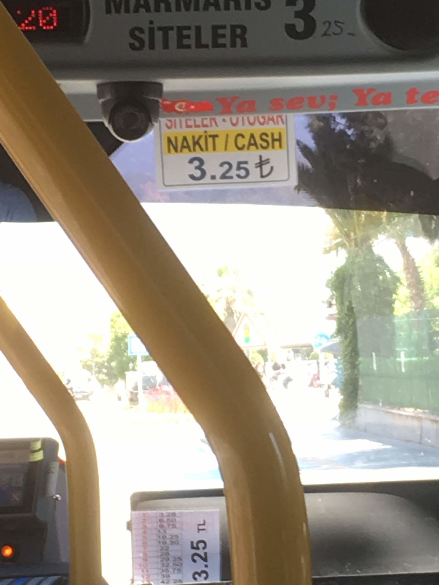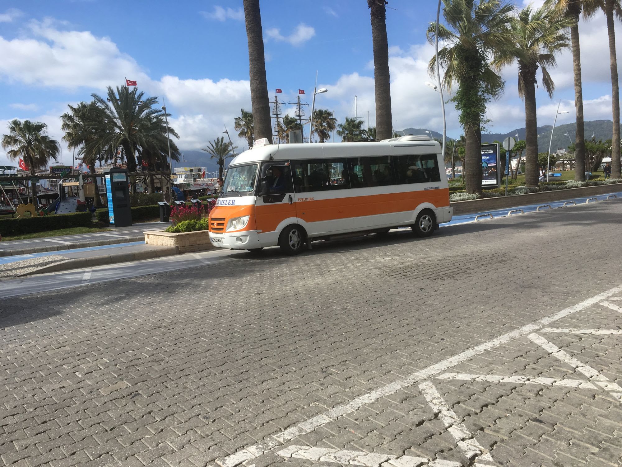 釣り銭もしっかり出ますので、現金を握って、手を上げて、飛び乗るだけ。後は運転手に現金を渡します。終点はバザールのあるロータリーですので、マリーナまでは数百m残すのみ。マルマリスのリゾートライフをお楽しみください。