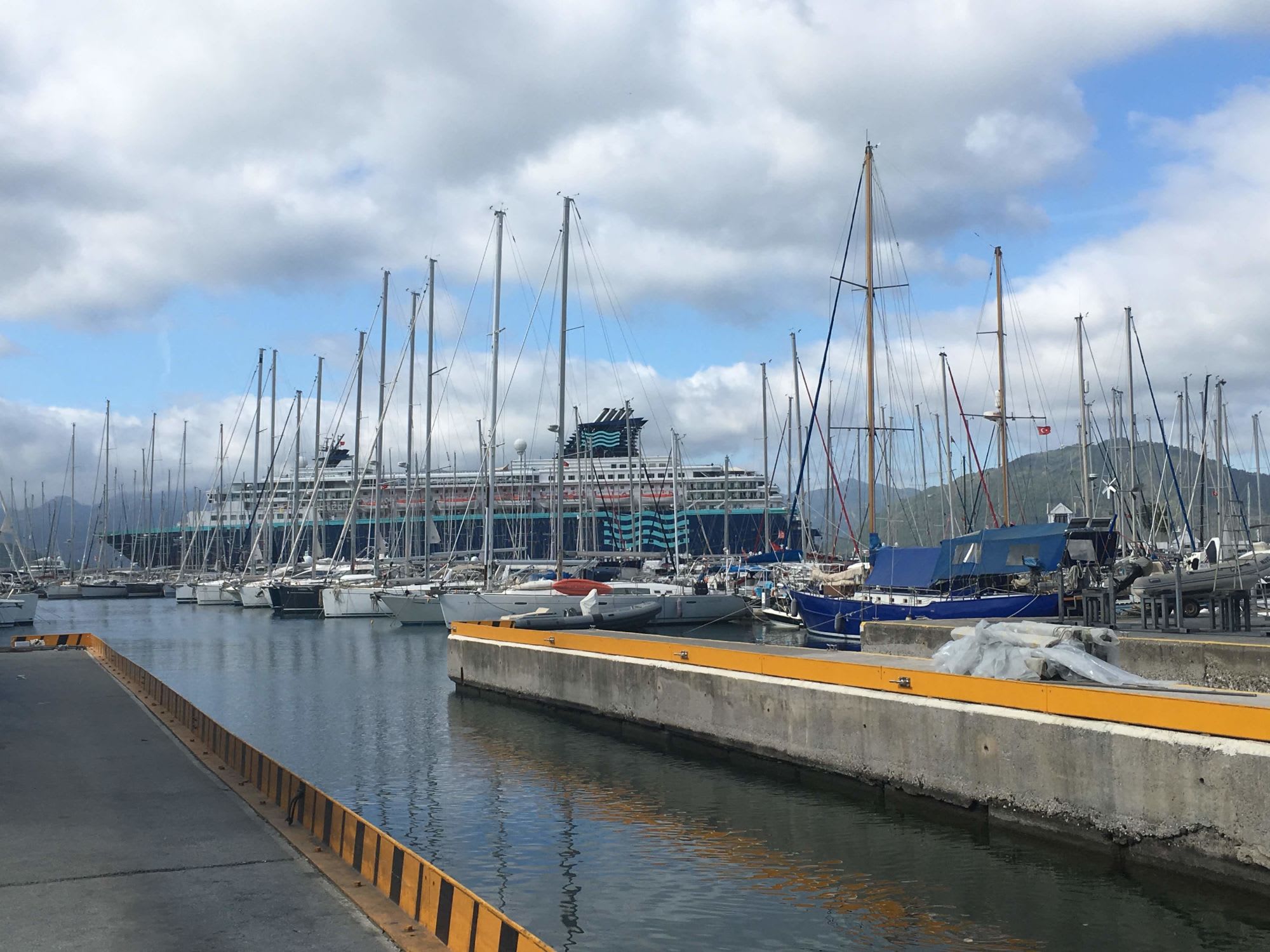 船は、マリーナに停まります。突堤の長さからしてHORIZONはギリギリぐらい。中型船しか停められません。