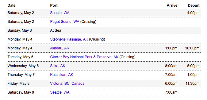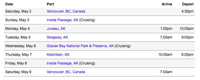 アラスカクルーズもGWは始まったばかりですが、シアトル発、バンクーバー発と何本か出ています。西海岸なので、フライトは少し短く楽ですね。