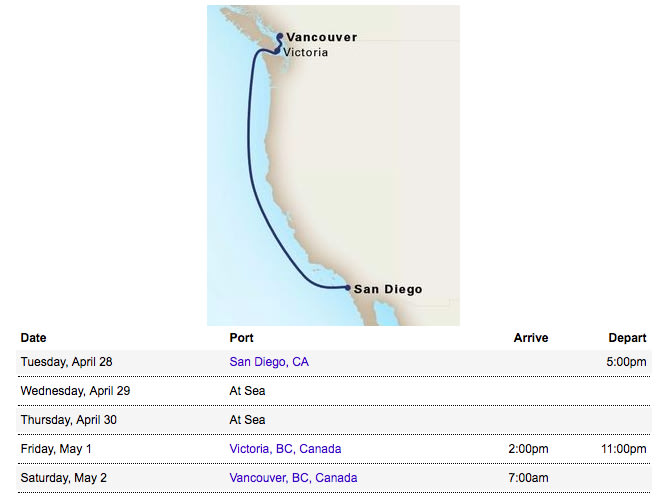 まずは、27日日本発、サンディエゴに入ります。28日乗船で4日間でバンクーバーまで。