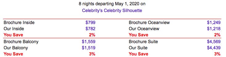 どれも魅力的ですが、Nieuw Amsterdamは1日捨てての帰国、Costa Fortunaはカリブ海で一度乗った船。となると、BritanniaかShilhouetteが残ります。