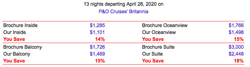 私はまだ現役サラリーマン。短期なら考えますが長期のラグジュアリー船は少し早すぎる。今回は、「カジュアル船でも良いので、16日連休を目一杯使ってみたら。」をテーマにしています。目に留まったのは、P&O Britannia、Holland America Nieuw Amsterdam、Costa FortunaとCelebrity Shilhouetteの4つ。どれも興味深いコースです。Nieuw Amsterdamは既に紹介済みですので、あと3つ。