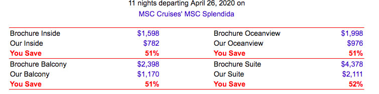 一番上のCMVは大人の船です。16歳以下乗船禁止。イギリスの船はSagaもP&Oも同じ様な扱いをする船があります。少しイギリス文化に慣れないと難しいかもしれないという漠然とした不安がありますので、今回はパス。船もMagellanは昔のCarnival Holidayですので、CMVに乗るならMarco Poloに乗ってみたいという趣味の価値観もあります。