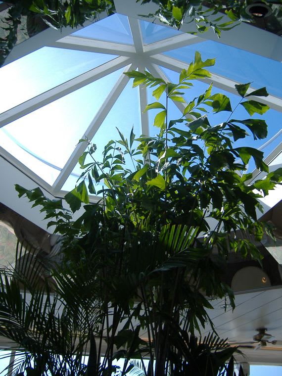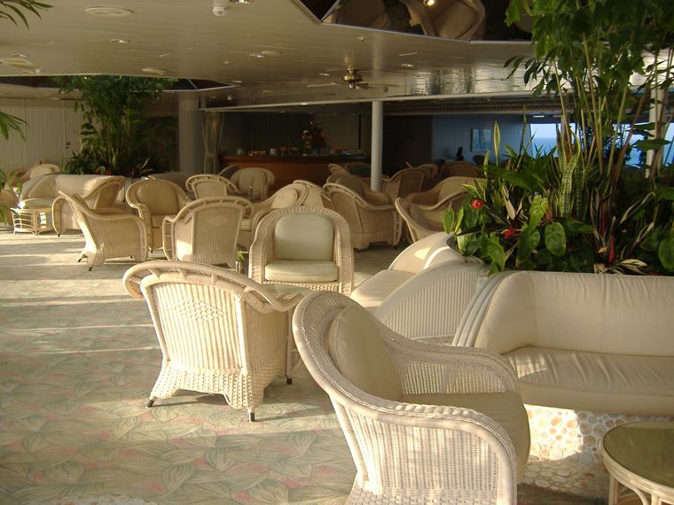 この公室の元祖は大西洋定期客船の、温室ラウンジであるウィンターガーデンが始まりです。そこから現在では空調で快適な温度で過ごせ、