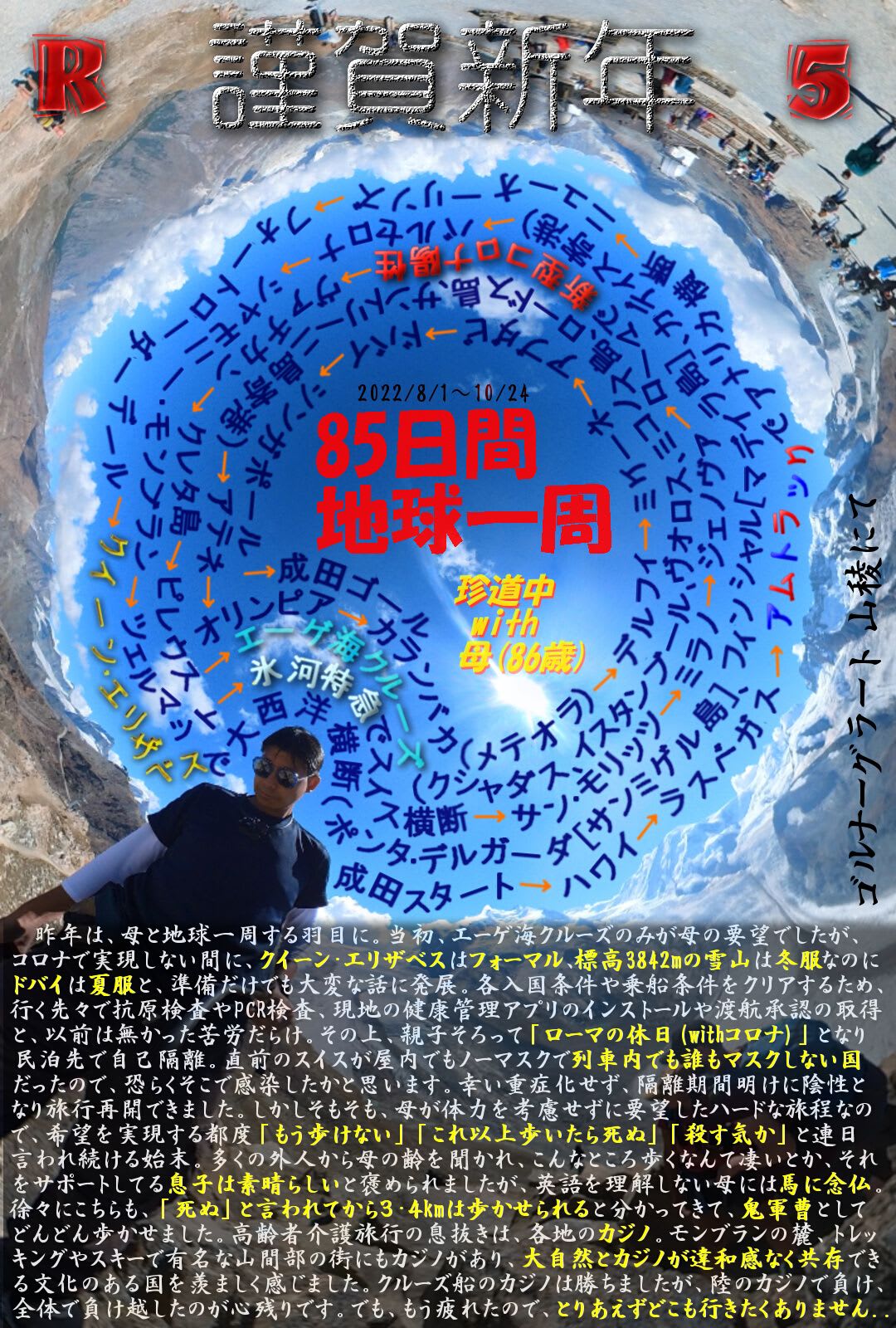 元々、長期の旅行はどこで予定が狂うか分からなかったので、ノルウェージャン・ジェイドを下船した後の日程は、かなり未確定なままスタートした旅行でした。実際、クイーン・エリザベス下船後、ノルウェージャン・ジェイド乗船前の約1カ月の間、9月頭に親子そろってローマで新型コロナ陽性となり、民泊先で自己隔離に。予定の一部変更を余儀なくされ、やっぱりかと。とは言っても、そもそも約1カ月開けたのは、もしもクイーン・エリザベスで感染した場合を想定し、次のノルウェージャン・ジェイドに乗れなくならないようにと、隔離期間等考慮してのこと。ローマ以降の日程変更は想定内でした。(スイスで感染したっぽいというのは予想外でしたが。)