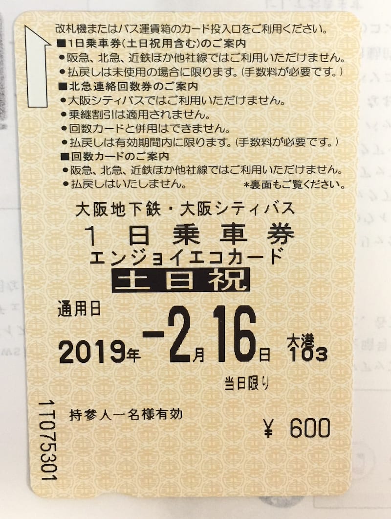 大阪地下鉄・一日乗車券(エンジョイエコカード)