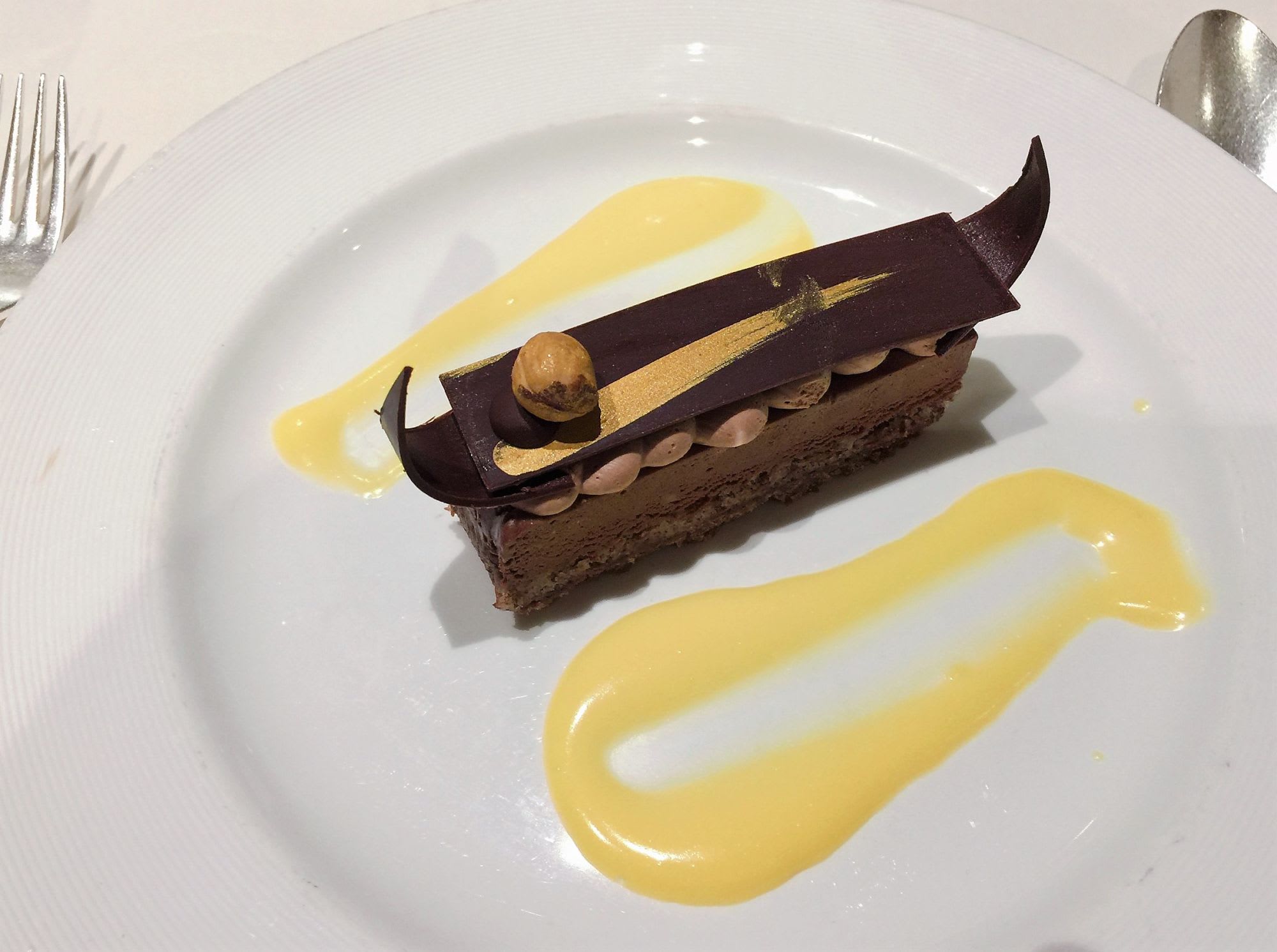 デザート(チョコレート・ジャーニー:チョコレートヘーゼルナッツバーとシトラスクリーム)
