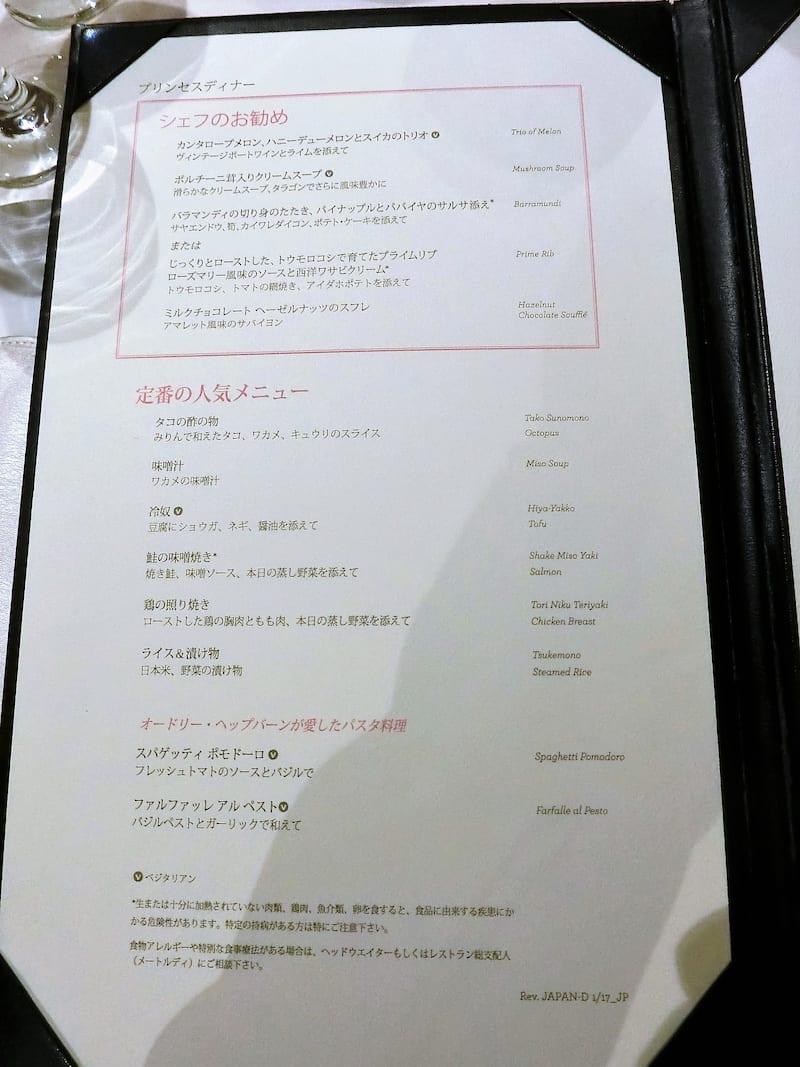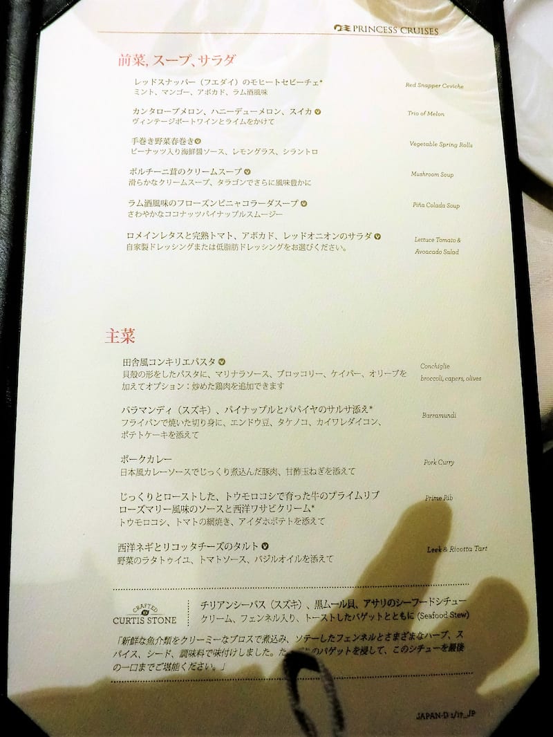 ダイヤモンドプリンセス メインダイニングで夕食の流れ
