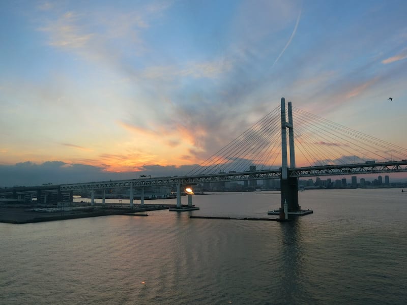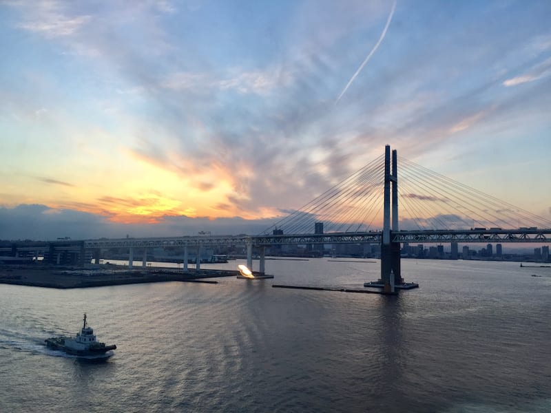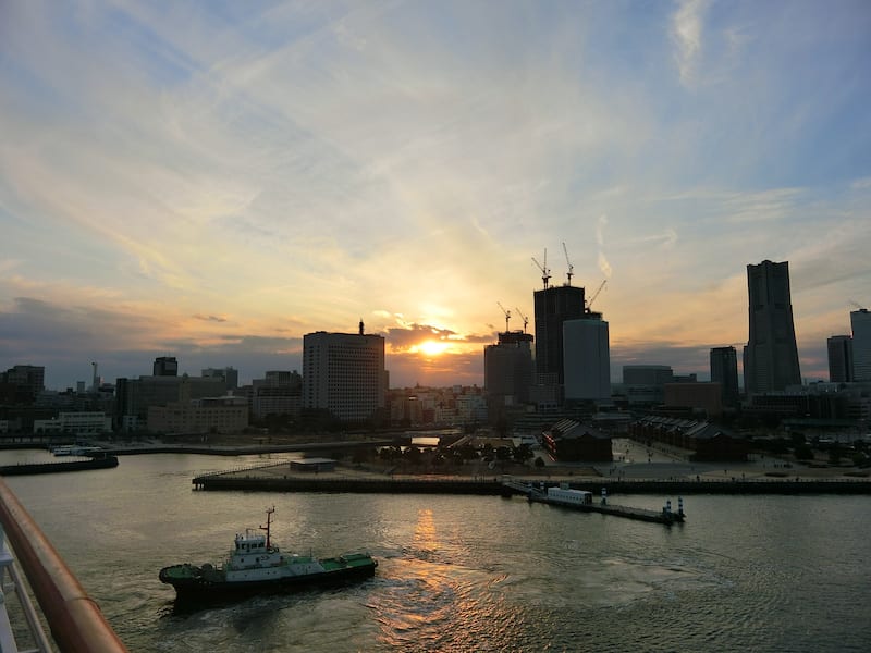 横浜港の夕焼けとダイヤモンド・プリンセス