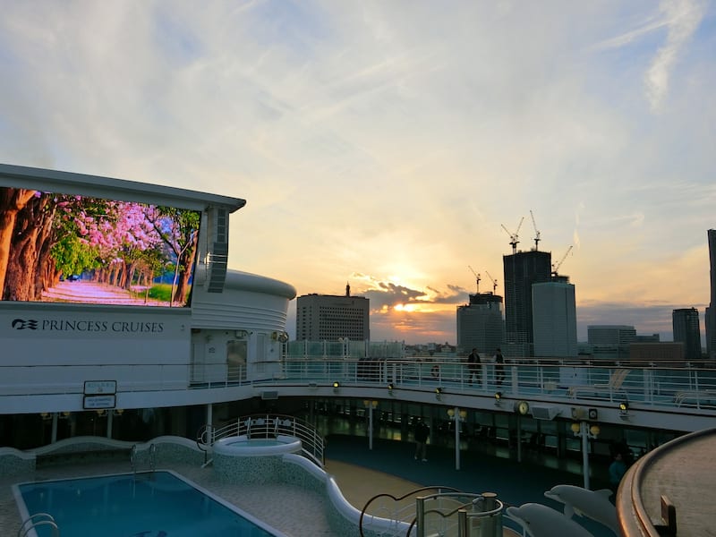 ダイヤモンドプリンセス 夕焼けと共に出港