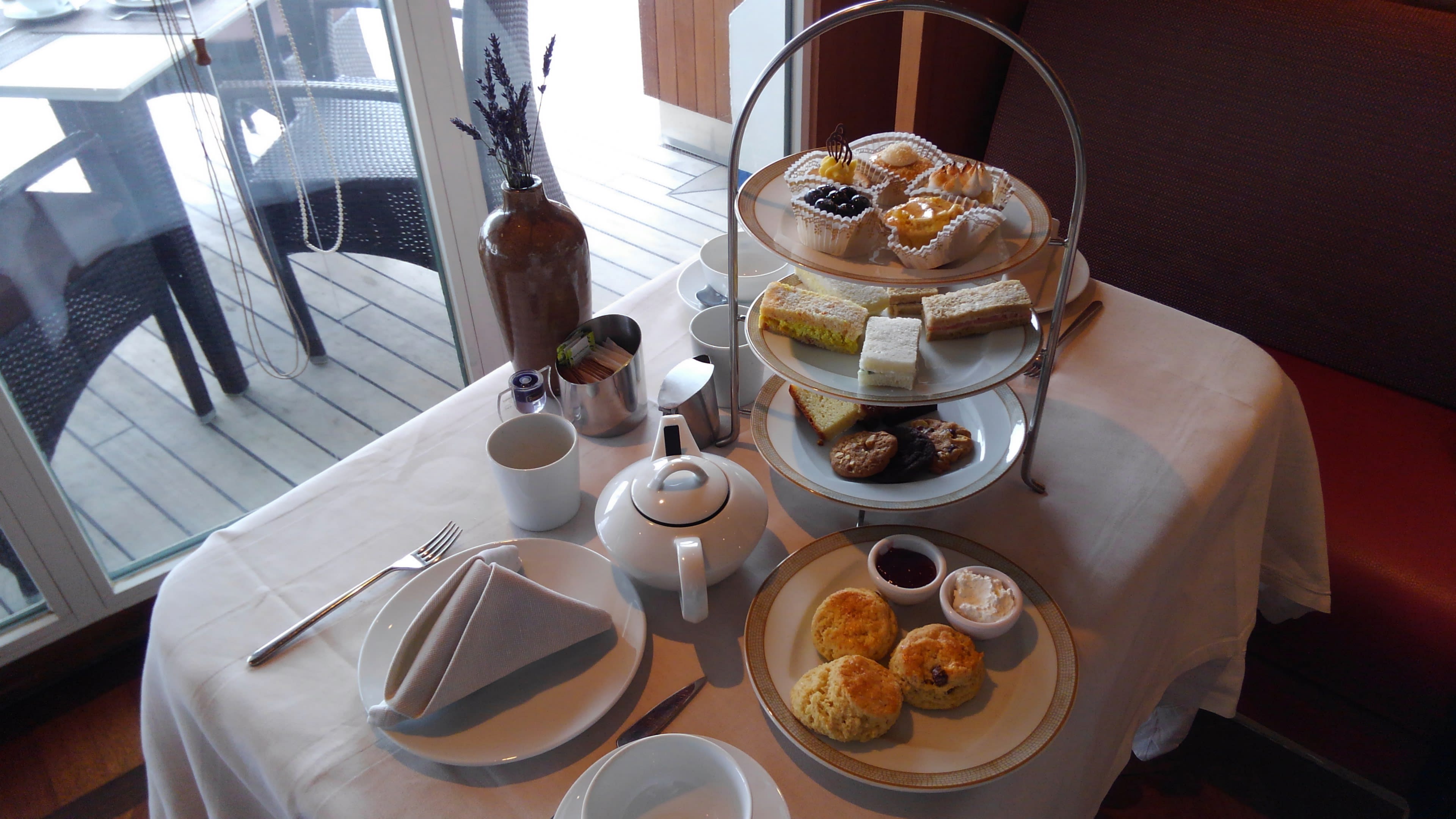 これまで参加したクルーズで、正統派英国式の3段ケーキスタンドで供されたのは、シルバーシーだけでしたので、私の中では「名物」認定です。いかにもそれらしい雰囲気になり、気分が盛り上がりました。