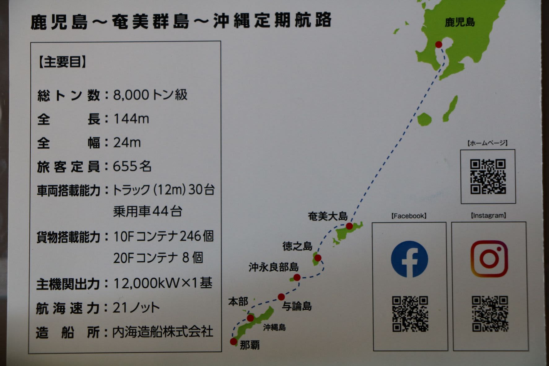 長距離フェリーの場合は港を出発してから到着港に着くまでどこにも寄港しないのが殆どですが、今回のクイーンコーラルクロスは鹿児島から那覇まで1泊2日の25時間の間に奄美大島、徳之島、沖永良部島、与論島の4島に寄港し、7つの港の入出港シーンや美しい沖縄の海を眺めながらの船旅を楽しめました。クイーンコーラルクロスの内装はナッチャンWorld、おがさわら丸など多くの船や飛鳥Ⅱの改装工事も手掛けられた故笠井統太氏によりデザインされており、かつての離島航路のフェリーのイメージとは違い、洗練された船内や設備の気配りに魅了されました。