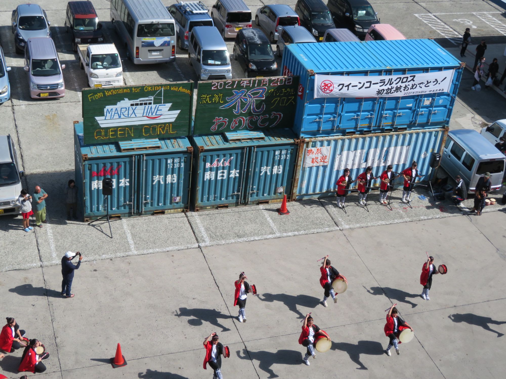 生活物資を運び、島民にとっては生活の要で離島航路の期待の新造船なので、初就航クイーンコーラルクロスを祝して、どこの寄港地でも島の人達から盛大な出迎えや見送りをしてもらい、快適な船内で今迄のフェリー旅とはひと味違う楽しい船旅ができました。