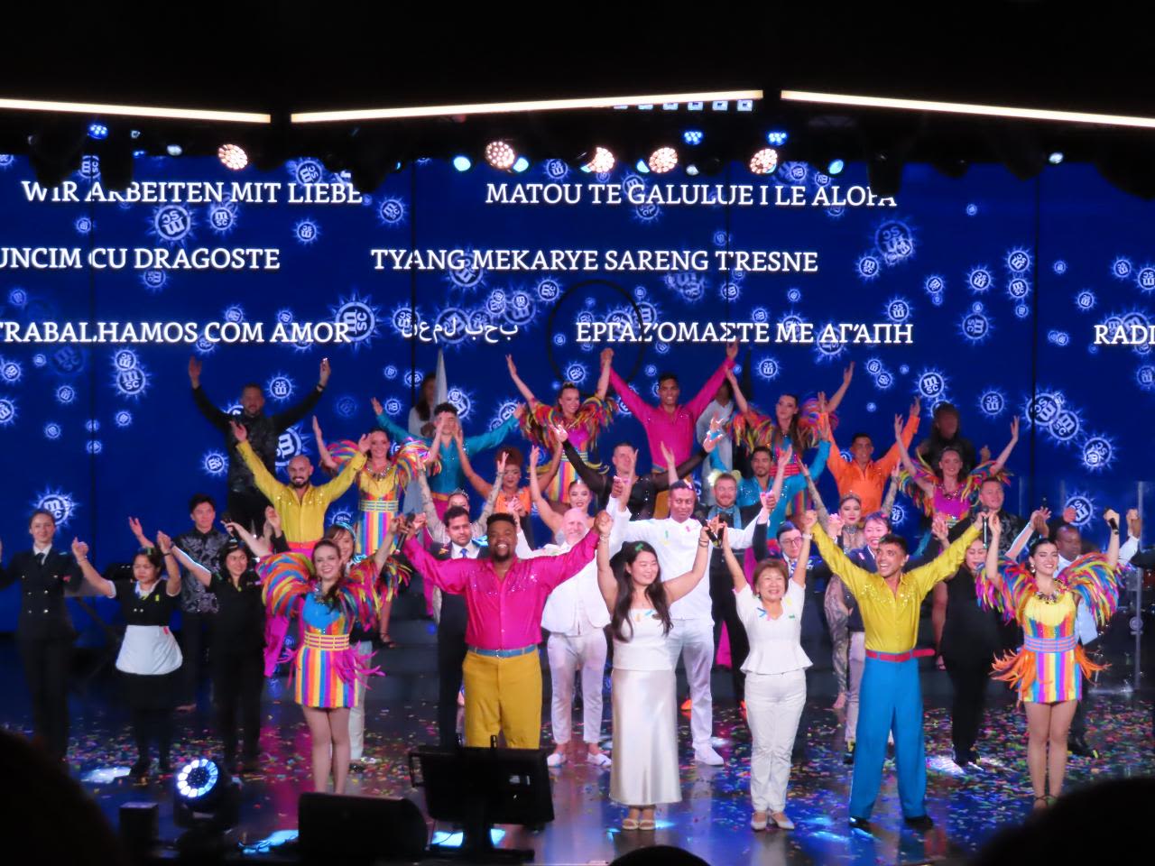 劇場での夜のショーを観るには一般客は長蛇の列に並ばなくてはいけないが、ヨットクラブの乗客は黒服のバトラーに付き添われて予約なしで専用席で観ることができる。