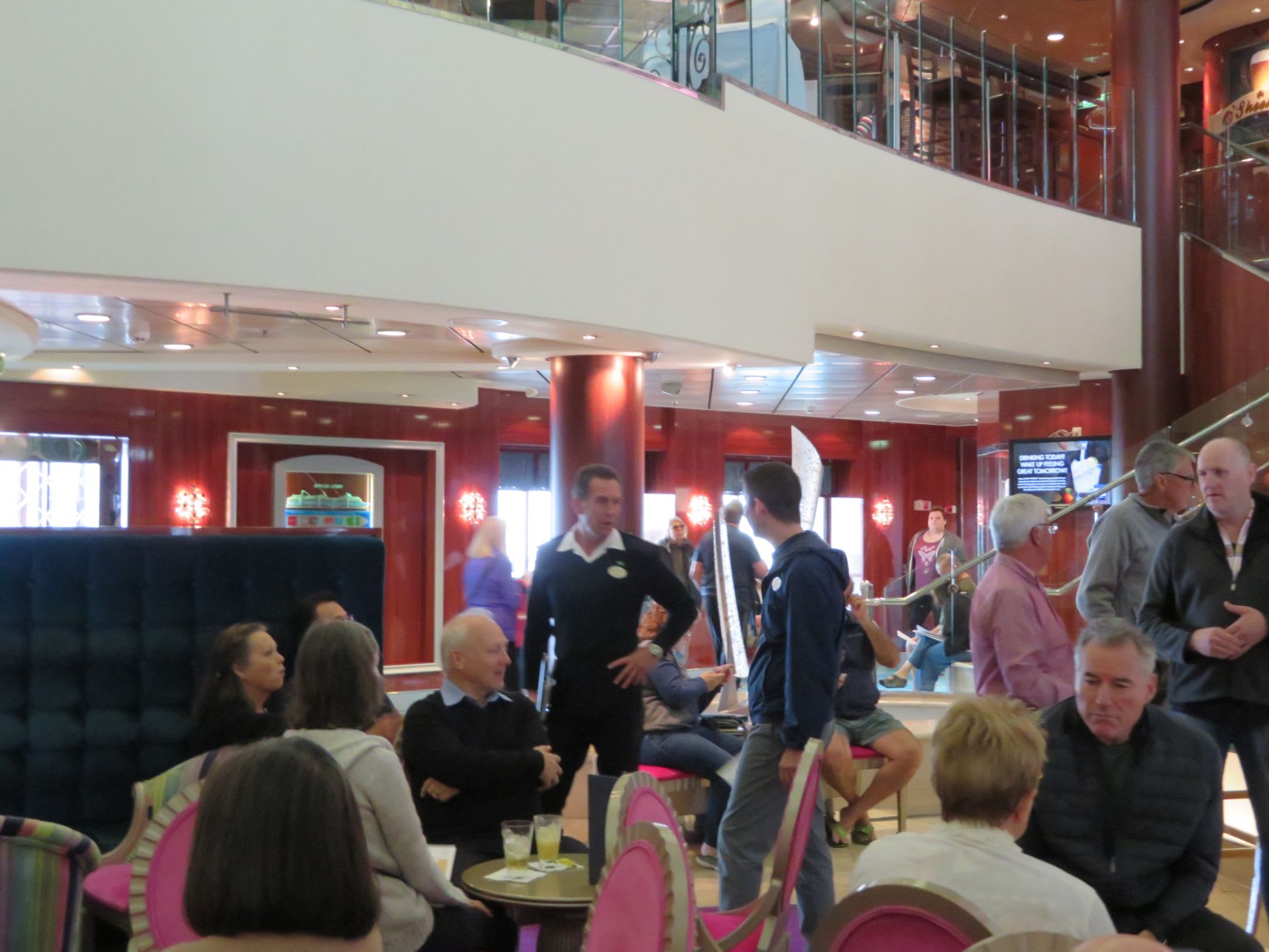 クルーも気楽に自由奔放に過ごしており、船長を囲む会でも船長の挨拶スピーチもなく、ただ立って手を振って会釈しているだけ。クルーは自由奔放に活動しており、乗船客の殆どがシニア層でも盛り沢山の催しで夜遅くまで一緒になって楽しみ、シニアを盛り上げて活を入れてくれる。