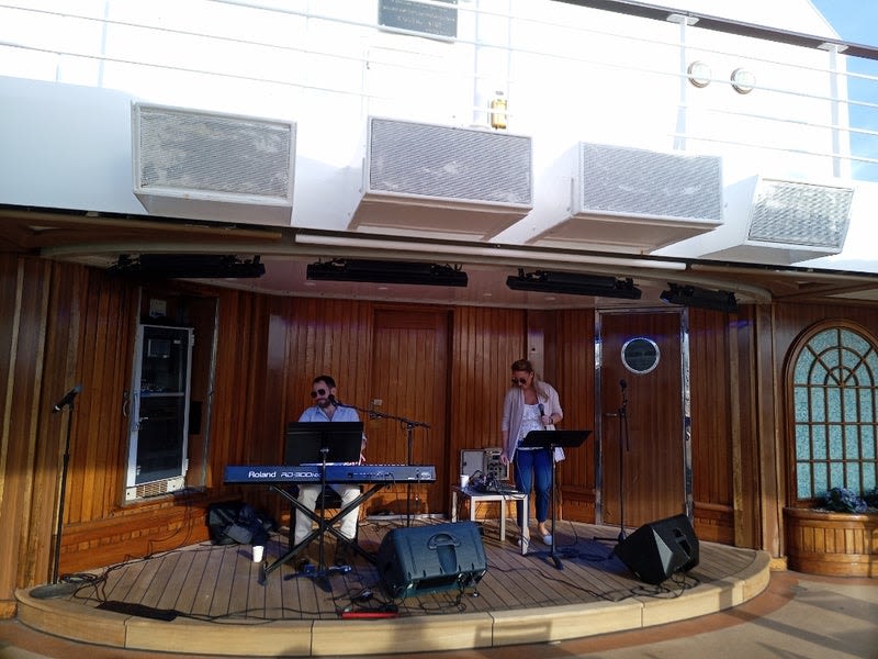 ライブをやっています60年代〜80年代のロック、ポップス中心で乗船アーチストの中で一番のお気に入りになりました